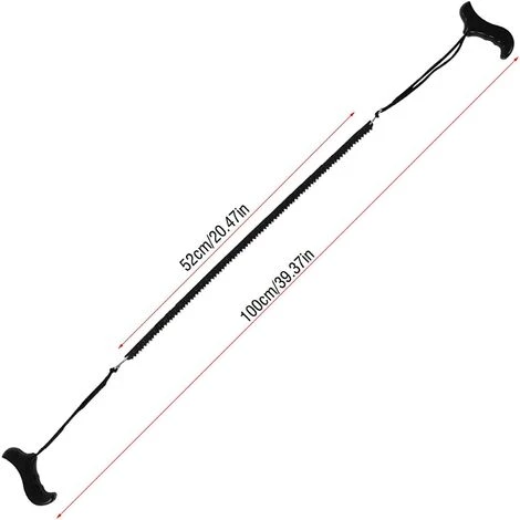 Spécification: Matériel: fer La couleur noire Taille de la scie: env. 52 cm / 20,47 pouces Longueur totale: env. 100 cm / 39,37 pouces Poids: env. 159 grammes Liste des paquets: 1 x scie