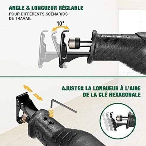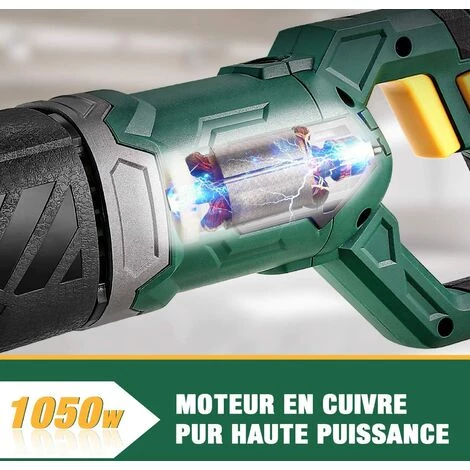 - Efficace et Rapide 】OFFRE LIMITÉE | MEILLEURE OFFRES !!! Le puissant moteur en cuivre pur 1050W garantit une expérience exceptionnelle avec une profondeur de coupe maximale de 150mm pour le bois et de 5mm maximum pour le métal. Course alternative de 22mm pour une coupe de haute qualité.