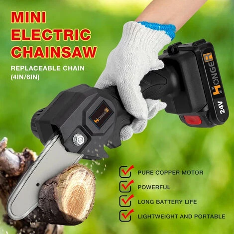 Type d’alimentation : Rechargeable – Technologie de batterie au lithiumTension nominale: 220VPuissance d’entrée nominale: 300Vitesse de la chaîne de scie : 2 000 tr/minAccessoires standard : tournevis, cléContenu : 1 mini tronçonneuse bleue, 1 chargeur. une pile.