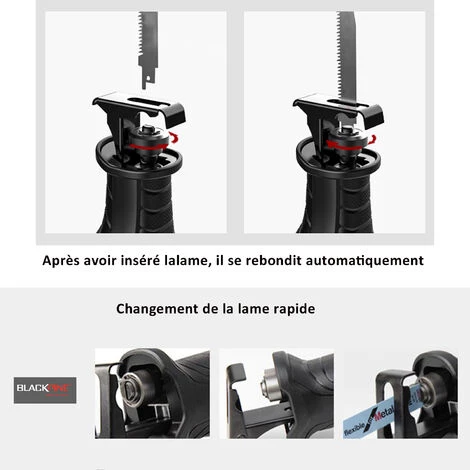 BLACKPINE vous propose Scie Sabre, Scie Égoïne 900W 0~2800RPM, 2 Lames, Profondeur de Coupe: Bois & Plastique 0-326mm, Métal 0-300mm.