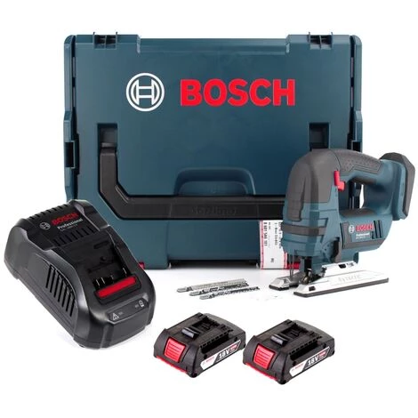 Le Bosch GST 18 V-LI B est conçu pour effectuer des coupes et des découpes de séparation dans le bois, le plastique, le métal, les plaques en céramique et le caoutchouc avec un support fixe. Il convient aux coupes droites et courbes avec un angle d’onglet jusqu’à 45 °. La scie sauteuse sans fil extrêmement compacte de 26 cm garantit une maniabilité et des virages parfaits. Les performances élevées de la machine permettent une progression de sciage rapide avec une longue durée de vie de la batterie. Le système de serrage de la lame de scie permet un changement de lame de scie d’une seule main sans outil. La plaque de base en aluminium avec semelle en plastique offre de meilleures propriétés de glissement et protège en même temps les surfaces sensibles. La scie sauteuse est fournie dans une L-Boxx avec un chargeur rapide et deux batteries. La technologie COOLPACK des batteries garantit une durée de vie jusqu’à 100% plus longue par rapport aux batteries sans COOLPACK. Le chargeur rapide multivolt pour toutes les batteries Li-ion de 14,4–18 volts charge complètement les deux batteries en 30 minutes chacune.