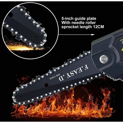- 3. Scie électrique sans fil: Cette scie électrique sans fil au lithium-ion utilise une chaîne de guidage de haute qualité, qui a été profondément durcie pour assurer une coupe en douceur. La conception des dents en bois peut rendre la tronçonneuse coincée dans les branches, coupant plus efficacement et plus rapidement.