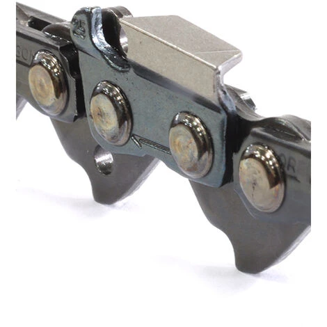 Chaîne chisel à dents tranchantes rectangulaires et maillons entraîneurs de sécurité. Chaîne de tronçonneuse haute performance pour une utilisation professionnelle.
