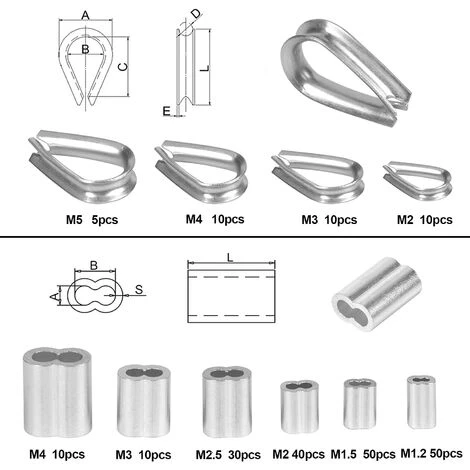【Conception Pratique】: Conçu pour éviter d’écraser ou de surcharger le câble métallique à l’extrémité terminale qui est utilisé pour protéger l’œil d’un câble métallique ou d’une élingue. Les cosses offrent une excellente protection contre l’abrasion de surface des câbles métalliques, pour prolonger la durée de vie du câble métallique.