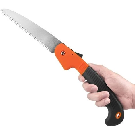 Puzzle de conception compacte et pliable pour scie à main pliante – Idéal pour tailler, tailler, scier, camper, faire de la randonnée, chasser et amp; Couper du bois, des cloisons sèches, des os et amp ; Plus (Orange + Noir)