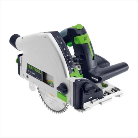 La scie circulaire plongeant Festool TS 55 REBQ-PLUS est l’une des meilleures scies électriques jamais conçues par Festool. La machine est équipée d’un carter ultraplat qui permet de travailler au plus près du mur (12 mm). La scie circulaire plongeant Festool TS 55 REBQ-PLUS possède un réglage angulaire avec fonction de contre-dépouille de -47 à 1 degré, plus un sabot de guidage pour des travaux sûrs et une pose simple dans un trait de coupe déjà existant. La machine est équipée d’une fenêtre d’inspection transparente et réglable permettant d’avoir une bonne visibilité de la coupe. L’outil est idéal pour des coupes en profondeur précises jusqu’à une épaisseur de 55 mm. Le rail de guidage permet de réaliser des coupes parfaitement droites et sans éclats.