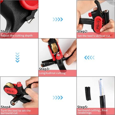 Bouton de profondeur de coupe : la profondeur de coupe peut être ajustée librement en fonction de l’épaisseur de la couche isolante, et le maximum peut être ajusté à 5 mm.