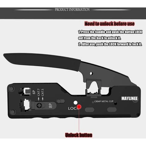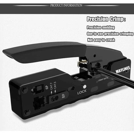 {Facile à utiliser} – Cet outil est un outil de sertissage de réseau qui intègre le sertissage, le cisaillement, le dénudage et la mesure. Il est pratique, plus rapide et plus efficace à utiliser.