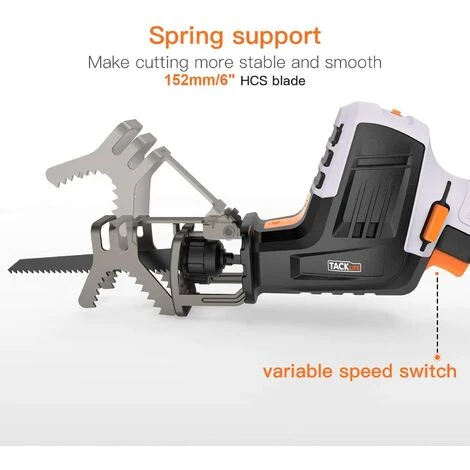 【Ce Que Vous Obtenez】 – 1 x scie alternative TACKLIFE; 1 x batterie au lithium-ion maxi 12 V; 1 x chargeur; 1 x bois de lame; 1 x mâchoire de serrage; 1 x manuel de l’utilisateur; 1 x carte de maintenance
