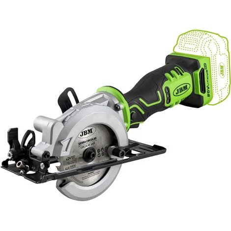 Scie à disque miniature avec emplacement arrière de moteur sans balais ref. 60011 est conçu pour scier du bois. La scie circulaire d’un diamètre de 115 mm avec 24 dents est idéale pour les coupes longitudinales/transversales droites, ainsi que pour le sciage de planches et panneaux de bois à un angle allant jusqu’à 45°.La profondeur et l’angle de coupe sont ajustés par des mécanismes ou des poignées appropriés, offrant une profondeur de coupe maximale de 28 mm et 24,8 mm pour un angle de coupe de 45º et 0º (90º), respectivement.La scie possède également un bouton de verrouillage du déclencheur pour éviter un démarrage accidentel de l’outil et un boîtier en aluminium.De plus, un guide parallèle, un tube collecteur de poussière et une clé hexagonale pour une installation et un retrait corrects du disque sont fournis dans le kit.Tension : 20 V de courant continuVitesse de rotation à vide : 4000 tr/minDiamètre du disque coupant : 115 mm (4-1/2”)Taille de l’axe : 10 mm (3/8”)Profondeur de coupe maximale : 42,80 mm, 0º /28 mm, 45ºPoids : 2,06 kgPièces à fournir :Scie circulaire à 24 dents, 1 pièceGuide parallèle, 1 pièceClé hexagonale, 1 pièceTube collecteur de poussière, 1 pièceBouton de verrouillagePoignée soupleBoîtier supérieur et inférieur en aluminiumSystème de collecte de poussière*Batterie non incluse