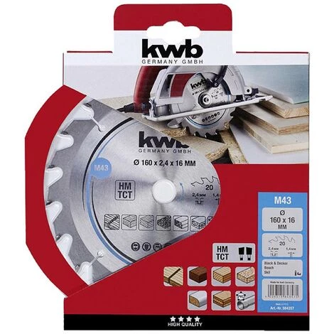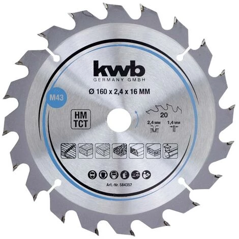 kwb 584357 plaques de copeaux lame de scie circulaire, bois/bois dur, 160 x 16 mm, coupes propres, nombre moyen, 20 dents Z-20, lame de scie CleanCut moyenne, 160 x 16