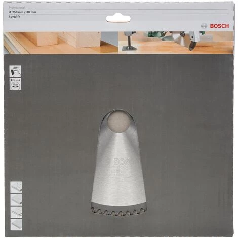 Cette lame de scie circulaire Bosch est une lame de scie circulaire professionnelle particulièrement adaptée à diverses activités de coupe. Les dents en carbure (80), très aiguisées, assurent des coupes précises. Le diamètre de la lame de scie est de 250 mm avec un alésage de 30 mm.