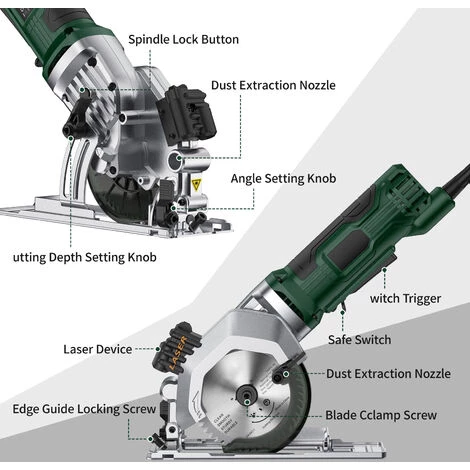 Mini scie circulaire, 4,8 A 4-1/2 pouces, scie circulaire compacte, 3500 tr/min, scies circulaires électriques avec guide de coupe au laser, parfaites pour les coupes de bois, de carreaux et de plastique