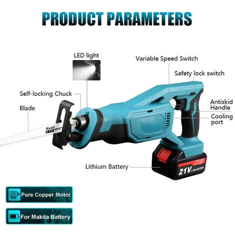 Il s’agit d’une sorte de scie alternative de qualité, qui adopte un moteur de grande puissance pour un contrôle puissant, qui peut fournir une puissance de sortie stable. Installation facile, vous pouvez rapidement échanger et remplacer le foret et la batterie sans utiliser d’outils. Convient pour couper du bois, des tôles de fer et des plastiques. Vous pouvez essayer.