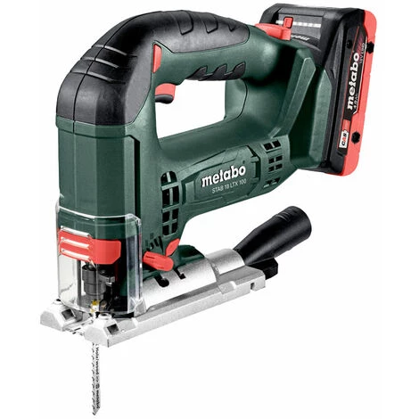 The Metabo 601003800 18v 2×4.0Ah Li-HD Bow Handle LTX Jigsaw features precise and material-matched sawing due to the variable stroke rate, pendulum stroke and low-lying saw blade guidance with spring support. – OOS