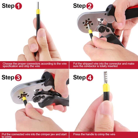 - KIT DE FONCTIONNEMENT PORTATIF – Le kit d’outils de sertissage de virole peut vous aider à compléter rapidement le câblage, adapté à tous types de commutateurs d’équipement, batteries, voitures et particuliers, composants électroniques à broches, etc.