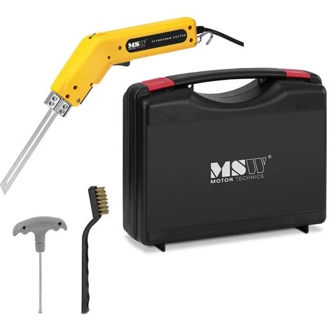 Le découpe-polystyrène MSW-STC-150 de MSW est idéal pour couper les matériaux d’isolation, pour les travaux fins comme le modélisme, pour réaliser des saignées et passer des câbles ou tuyaux et bien d’autres applications encore. L’appareil glisse sans résistance dans les matériaux isolants tels que le polystyrène expansé (PSE) ou extrudé (XPS). C’est possible grâce à sa température de service élevée qui se règle au moyen d’un bouton et peut atteindre jusqu’à 600 °C. La poignée ergonomique et le long câble d’alimentation ( m) de l’appareil issu de notre gamme d’outillage professionnel favorisent un travail très flexible. L’envoi comprend une lame droite et différents accessoires.