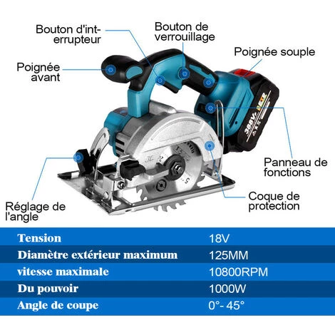 - Diamètre de la lame de scie (non fournie) : 125 mm