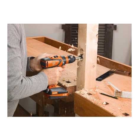 - Avec mandrin de perçage en métal QuickIN (120 Nm) avec mors de serrage en acier trempé et forces de serrage élevées.