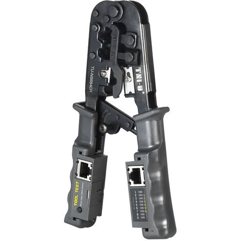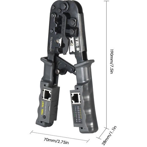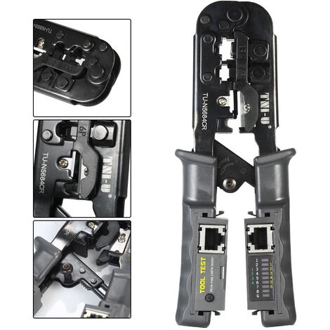 Ce produit combine une pince à sertir et un testeur de fil en un, que vous pouvez sertir / dénuder / couper des câbles et tester la continuité / court-circuit / circuit ouvert / erreur de câblage facilement.