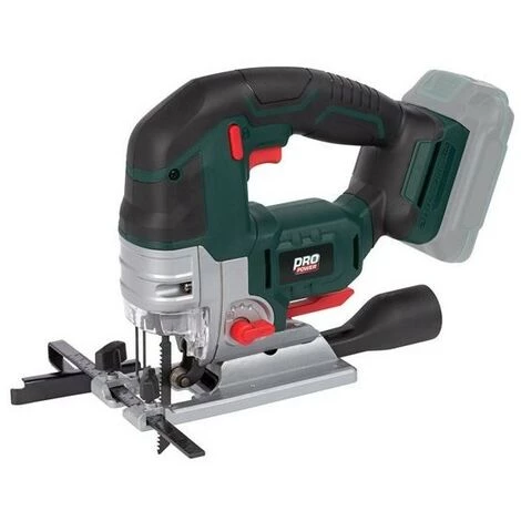 La scie sauteuse de Pro Power est munie d’une semelle solide en aluminium, que vous pouvez aisément basculer de 45° à gauche et à droite, sans utiliser des clés. Un angle oblique fait ainsi également partie des possibilités. Les lames de scie peuvent facilement être échangées avec le changement rapide, à nouveau sans devoir chercher des outils. Raccordez l’appareil à un aspirateur pour garder une bonne visibilité de la ligne de coupe. Une lame de scie pour le bois est incluse.