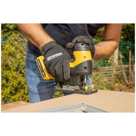 Cette scie sauteuse sans fil a un design compact et une tension de 20V. Elle est donc parfaite pour tous vos travaux de sciage dans et autour de la maison. Le puissant moteur sans balais offre une ultra-longue durée de vie à l’appareil et ne requiert que peu d’entretien. Le moteur atteint non moins de 3000 mouvements de scie par minute. Vous disposez d’une capacité de coupe de 100mm en bois, 10mm en plastique et 6mm en acier.