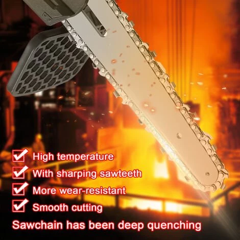 La chaîne de scie a été trempée en profondeur à haute température, avec des dents de scie affûtées, une coupe plus résistante à l’usure et plus douce.