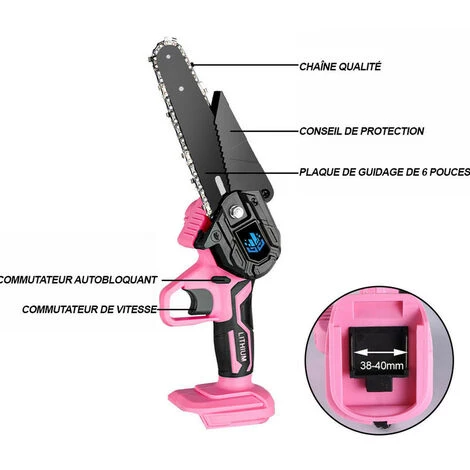 - Poids de la tronçonneuse : 700g (pas le poids de la batterie)