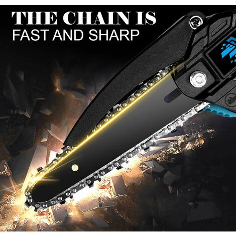 Scie électroportative 1200W Mini Tronçonneuse Onevan – Bleu – 6 Pouces Sans Fil Pour Makita – Avec 1 Batterie 128vf – Vitesse Réglable Pour La Coupe Du Bois