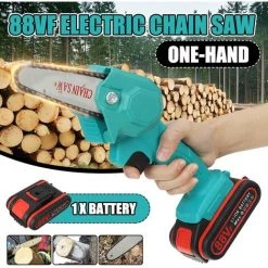 JMAX Tronçonneuse à Batterie 4 Pouces 88V Avec Batterie Portable Scie Électrique Jardin Logging Bleu
