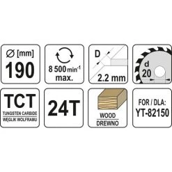 YATO Lame De Scie Circulaire – 24T – Ø20mm – Circonférence 190mm