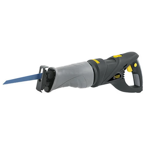 Scie sabre RS 800. Puissance 800 W. Variateur de vitesse. Capacité de coupe maxi 115 mm. Poignée rotative. Vitesse de rotation 0-2500 TR/MIN. Pour scier sans effort dans du bois (jusqu’à 115mm), du métal (jusqu’à 6 mm) et des branches d’arbres (jusqu’à 150mm). Poignée confort. Faible niveau de transmission des vibrations. Poignée arrière rotative 180°.Changement de lame sans clef. Variateur de vitesse électronique pour adapter la vitesse de la lame au matériau coupé. 4 lames pour le métal, le bois sec, le bois vivant. Garantie : 2 ans ( hors pièce d’usures). Avec plus de 400 références différentes, Far Tools est toujours là pour vos projets et travaux. Qu’il s’agisse de travailler le bois, le métal ou n’importe quels matériaux de construction, de souder, couper, abraser, percer, rabot dégauchir, mortaiser ou poncer. la gamme jaune et noire de Far Tools est à vos côtés.