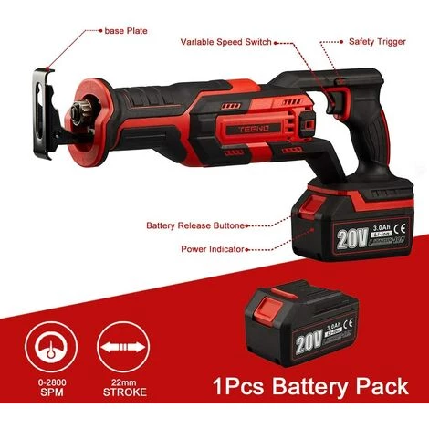 Le paquet contient:1 x Scie alternative TEENO; 1 batterie au lithium-ion maxi 20 V, Capacité 3.00Ah; 1 x Chargeur; 2 x Lame de bois; 3 x Lame de Metal; 1 x manuel de l’utilisateur; 1 xboite en plastique; 24 mois de maintenance.