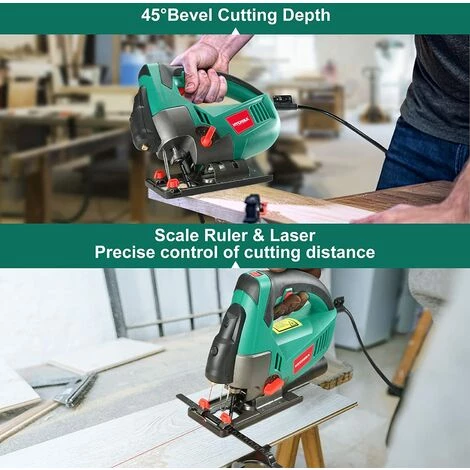 - Puissant moteur en cuivre pur 750W, le max profondeur de coupe est 110mm pour le bois et 10mm pour métal.