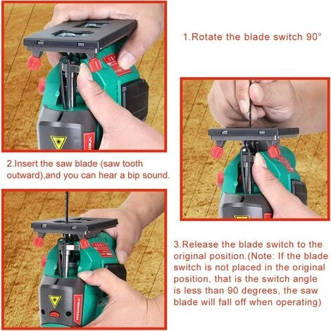 - Avec 6 lames de scie (2 pour le métal et l’aluminium, 4 pour le bois et le plastique), il peut être facilement remplacé sans outils.