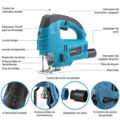 - La scie sauteuse est équipée d’une boîte de rangement magnétique des deux côtés pour un rangement facile de la lame de scie.