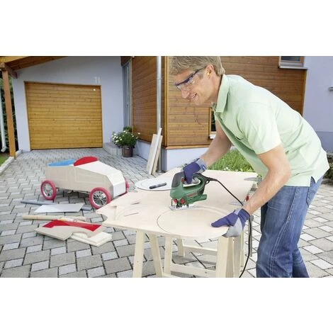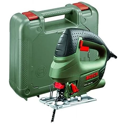 Scie sauteuse de 530 W. 500-3000 rpm. Faible niveau de vibration. Syst�me Bosch SDS. Fonction de soufflage. Contr�le �lectronique Bosch et mouvement pendulaire � 4 niveaux. Profondeur de coupe du bois : 75 mm. Lame de scie et �tui.