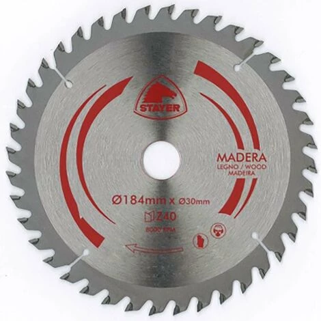Disque de coupe du bois.40 dents.184mm de diamètre.20mm de broche pour scie circulaire.8000 rpm.