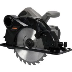 Cette scie circulaire de la marque Sthor est puissante et pratique avec un angle de coupe réglable.