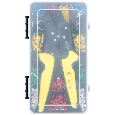 Le kit contient une pince à sertir, des attaches de câble, des cosses et une boîte de rangement en plastique. C’est une trousse à outils pratique, adaptée aux électriciens et aux bricoleurs sur les fils à remplacer ou à réparer, les projets électroniques, etc.