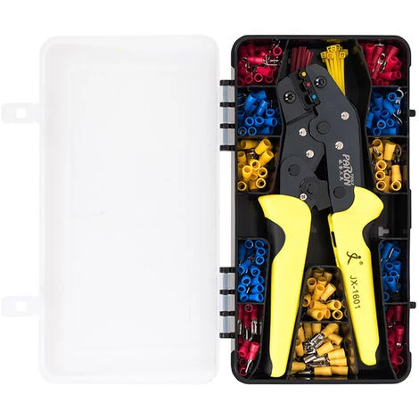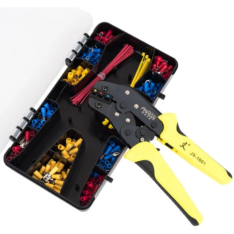 Le kit contient une pince à sertir, des attaches de câble, des cosses et une boîte de rangement en plastique. C’est une trousse à outils pratique, adaptée aux électriciens et aux bricoleurs sur les fils à remplacer ou à réparer, les projets électroniques, etc.