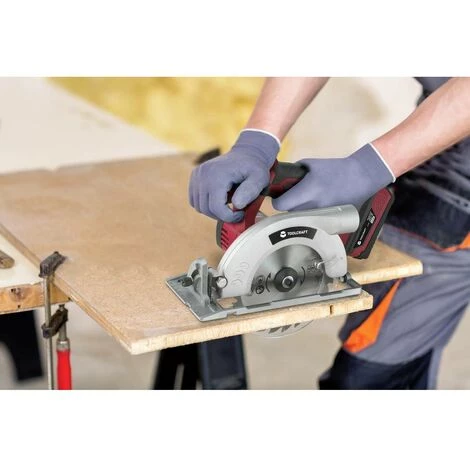 Pratique et puissant Le moteur brushless puissant de la scie circulaire manuelle TOOLCRAFT fait passer la lame de scie à 3800 tours par minute et permet des scies sans effort avec une profondeur de coupe de 55 mm avec une inclinaison de 90 degrés. Néanmoins, la scie ne pèse que 2,8 kg sur la balance. La raison en est la transmission, la protection de la lame et la plaque de base : toutes ces pièces sont en aluminium. Polyvalent et sûr La scie circulaire polyvalente TOOLCRAFT permet un réglage angulaire de 0 à 50 degrés et permet une profondeur de coupe de 40 mm même avec une inclinaison de 45 degrés. La lame d’un diamètre de 165 mm peut être remplacée rapidement et facilement grâce au verrouillage de la broche. ?POUR LA SÉCURITÉ ET LE CONTRÔLE LORS DE LA MANIPULATION DE LA SCIE, LA COUPURE DE SÉCURITÉ INTÉGRÉE RÉAGIT-ELLE IMMÉDIATEMENT À UN BLOCAGE DU DISQUE ? Une lame de scie, une clé hexagonale et le mode d’emploi sont fournis à côté de TOOLCRAFT. Ce texte a été traduit par une machine.