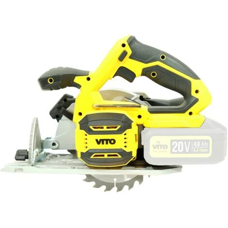 La scie circulaire sans fil VITOPOWER 20 V est équipée d’un disque de 150 mm de diamètre. Vitesse de 4200 tours/minute. Possède un réglage d’inclinaison jusqu’à 90º et son corps est en aluminium. Sans batterie.