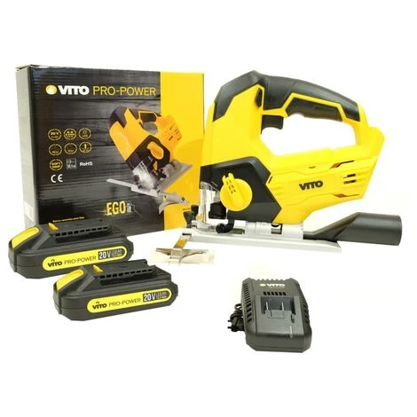 Scie sauteuse sans fil 20V VITO EGO 20 V Inclus : 2 batteries 2.0 Ah + un chargeur rapide. Support en Aluminium