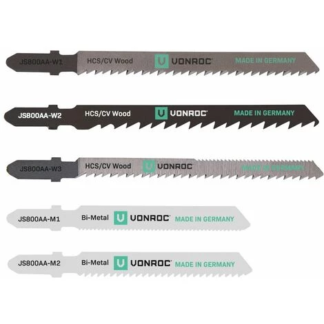 Cette scie sauteuse VONROC 550W comprend 3 lames de scie adaptées au travail du bois et 2 lames de scie adaptées au travail du métal. Les lames de scie sont équipées d’un raccord à arbre en T. Aucun travail n’est impossible avec cet ensemble complet !