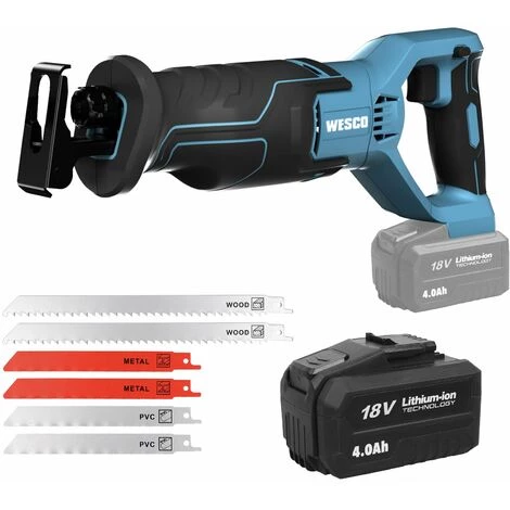 SAFETY NOTE: There is a safety button to prevent accidental activation.To start the WESCO cordless reciprocating saw, first press the safety button and then the on / off switch. The soft rubber grip and shock absorbing structure is non-slip and shock absorbing and therefore offers a good and secure grip.