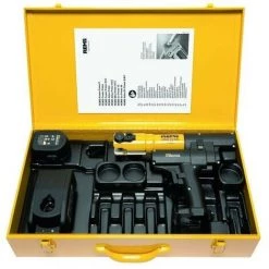 L’outil, également connu sous le nom de pince de sertissage, est utilisé pour réaliser des connexions poinçonnées sécurisées entre des câbles métalliques ou des câbles en acier et des manchons en cuivre ou en aluminium par sertissage et est utilisé dans les secteurs automobile et électrique ainsi que dans la construction de clôtures. Les quatre œillets de différentes tailles rendent cette pince à sertir polyvalente et permettent de gagner du temps, car aucun changement d’outil fastidieux n’est nécessaire.