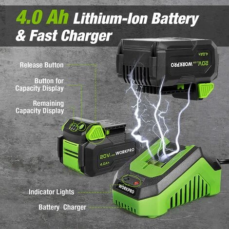 【Batterie Longue Durée】La batterie rechargeable de 4,0Ah peut prolonger la durée de vie de la batterie, et elle peut être complètement chargée en 100-120min. Avec une grande capacité, vous n’avez pas à vous soucier de manquer d’énergie pendant l’utilisation. Et l’indicateur de niveau de batterie vous permet de surveiller la charge et de charger la batterie si nécessaire