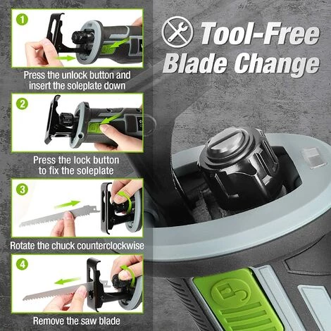 【Contenu de la Livraison】1 x scie sabre sans fil 20 V; 1 x batterie; 1 x chargeur; 4 x lames de scie; 1 x manuel d’utilisation